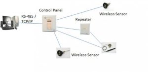 SmartNext Basic system includes Control Panel (with Modbus RS-485 / TCP-IP, Repeater, Wireless Transducers with Enroll / Test button for quality of link). Each transducer has a led with few colors that shows the quality of the link.